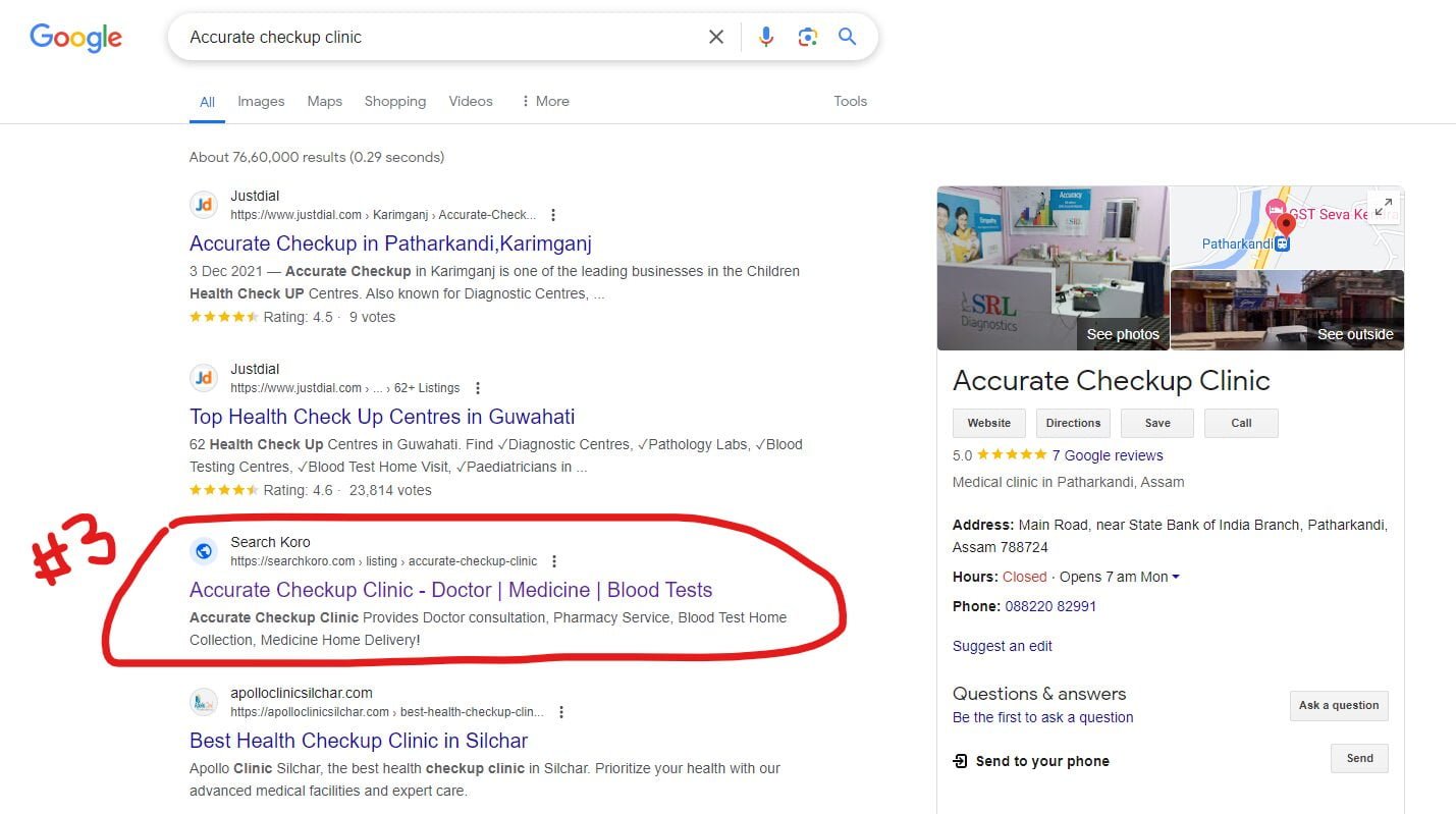 Accurate Checkup Clinic’s Google SERP Rank#2: Here is a screen shoot displaying the Google rank of Accurate Checkup Clinic